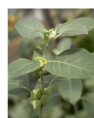 Ashwagandha has been found to have important healing effects on solid tissues, skin support, connective tissue, lymph tissues, blood vessels, and mucous membranes. Ashwagandha has found its most successful applications in treatment of conditions involving venous insufficiency, tissue inflammation and infection, and post-surgical healing. Taken together, these actions support the traditional reputation of Ashwagandha as a tonic or adaptogen. It counteracts the effects of stress, headaches and generally promotes wellness. Other benefits are for: Arthritis & Parkinsons, Hypertension, Diabetes, General debility. Traditional Ayurvedic Uses: general fatigue, rejuvenator, muscular weakness, stress- induced debility, anxiety, sexual debility in men and women, nervous exhaustion, rheumatoid arthritis pain, wound healing, asthma. A famous sutra: Medicinal Applications Action alterative, aphrodisiac, astringent, nervine, rejuvenative, sedative, tonic Action & Uses in Ayurveda & Siddha Tikta, kashaya rasam ushna veeryam, katu vipakam, kapha vata haram. Indications: Vranam, visham, aphrodisiac, strength giving, complexion improved, in kasam, swasam, soola, pandu, white leprosy, pruritis, karappan, fatigue Ayurvedic Applications Fruits or seeds are used as diuretic, and to coagulate milk. Root is used as an application in obstinate ulcers and rheumatic swellings.