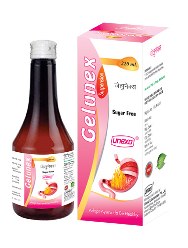 GELUNEX SUSPENSION is an instant remedy against hyperacidity and gaseous distension. It promptly neutralizes gastric acid secretions and heals inflammatory gastric mucosa. It quickly relieves of heartburn and overcomes abdominal pain. Sustained use prevents and heals peptic and gastric ulcers.