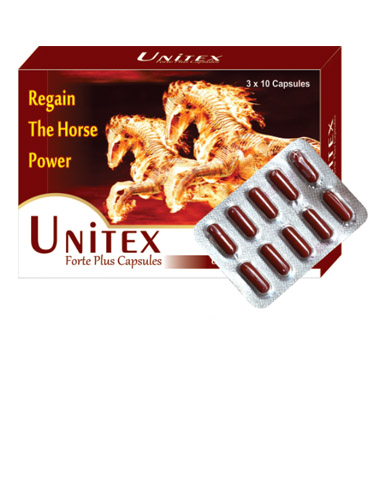 UNITEX FORTE PLUS enhances function of the male sexual organs and helps in development and maintenance of its size. It promotes stately erection, overcomes premature ejaculation and abolishes spermatorrhoea. It is a non-hormonal product and has no side effects. It overcomes frigidity in females also.